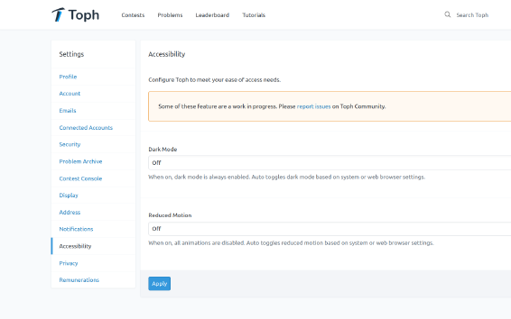 Toph Arena now includes programming language documentation and references.