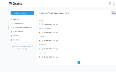 Organize your programming problems in Drafts using collections and stars.