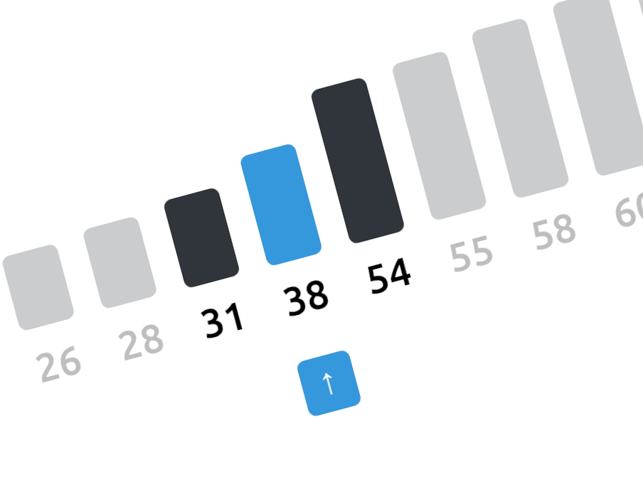 To look for 92 in this array, we need to first compare the middle value with 92. Since 92 is larger than 35, it can be said that all of the values in the array to the left of 35 will definitely be smaller than 92. And, if 92 were to exist in the array, it would exist to the right of 35 (where the values larger than 35 are).